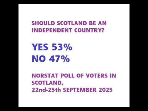 I've gone old-school and reverted to audio-only for my commentary on the new Norstat poll, which shows a substantial pro-independence majority (Yes 53%, No 47%) and a commanding SNP lead in Scottish Parliament voting intentions.  I consider the significance of there now seemingly being three polling companies, rather than the previous two, which are consistently showing Yes ahead, and in particular the significance of the fact that this is happening even though Norstat haven't yet abandoned the questionable practice of weighting by 2014 recalled vote (as far as I know).  I also question what the Sunday Times, who commissioned the poll, are playing at with the downright odd way they've presented the results - most notably their burying of the self-evidently newsworthy independence result.